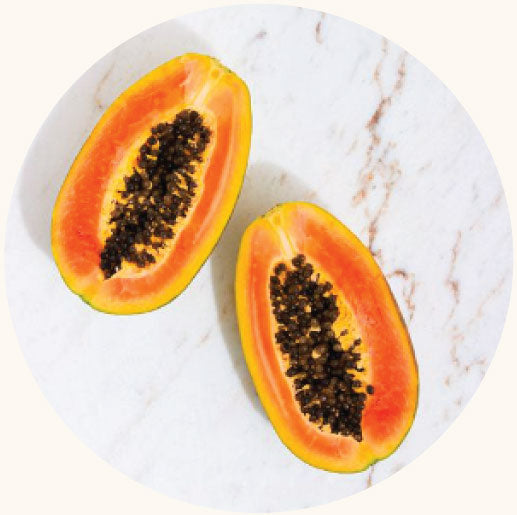 A tropical, oval-shaped fruit with orange flesh and small black seeds. Rich in essential vitamins like Vitamin E and helps to smooth and resurface the skin.